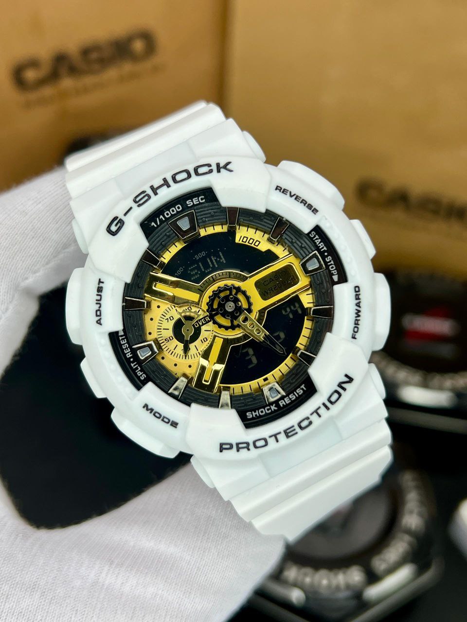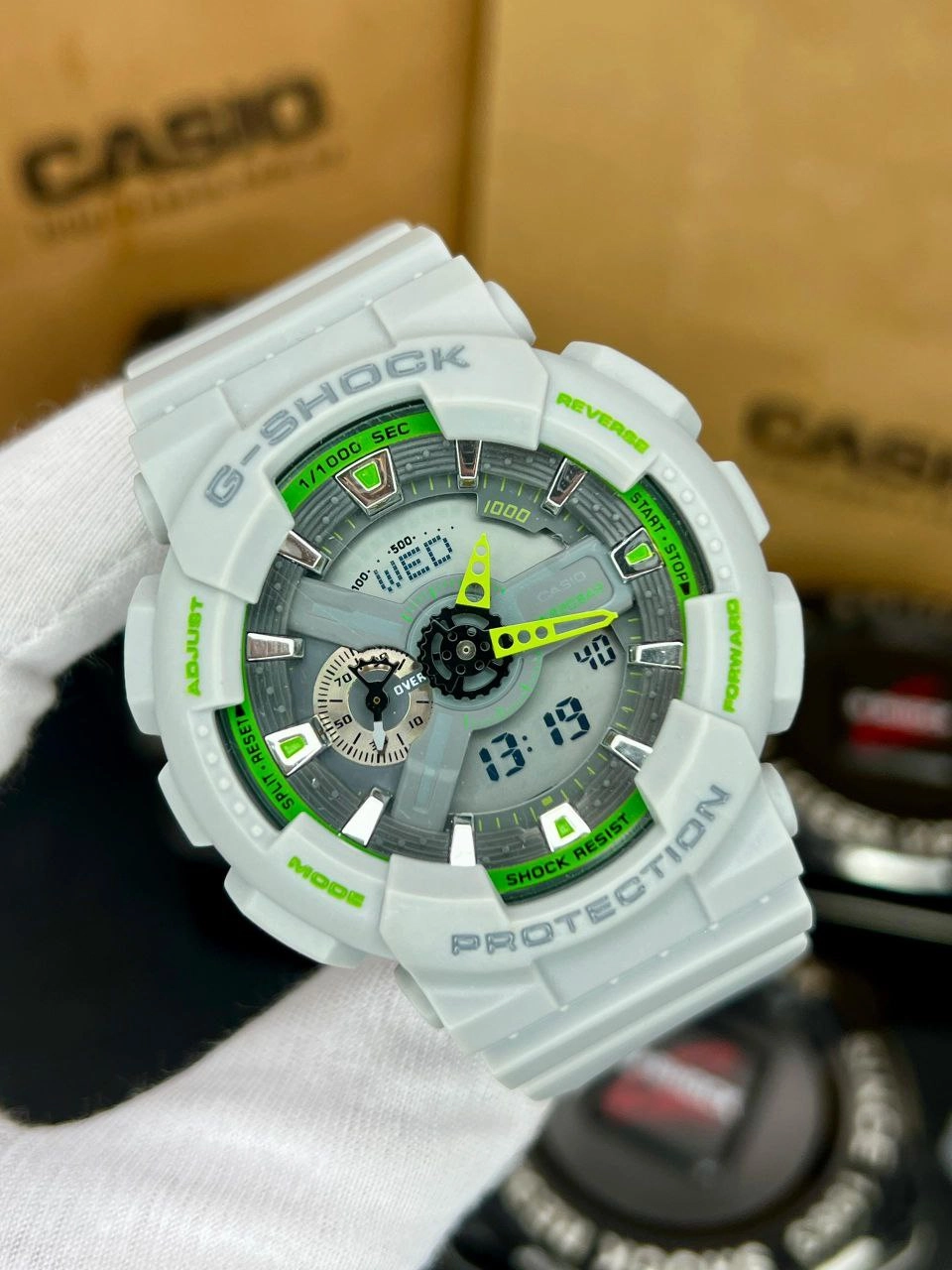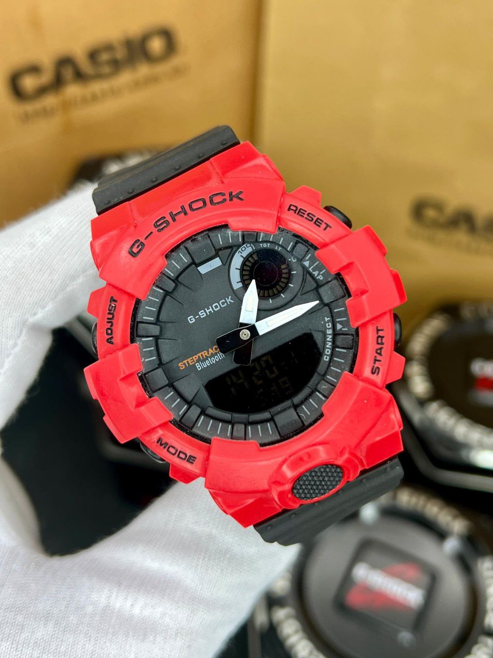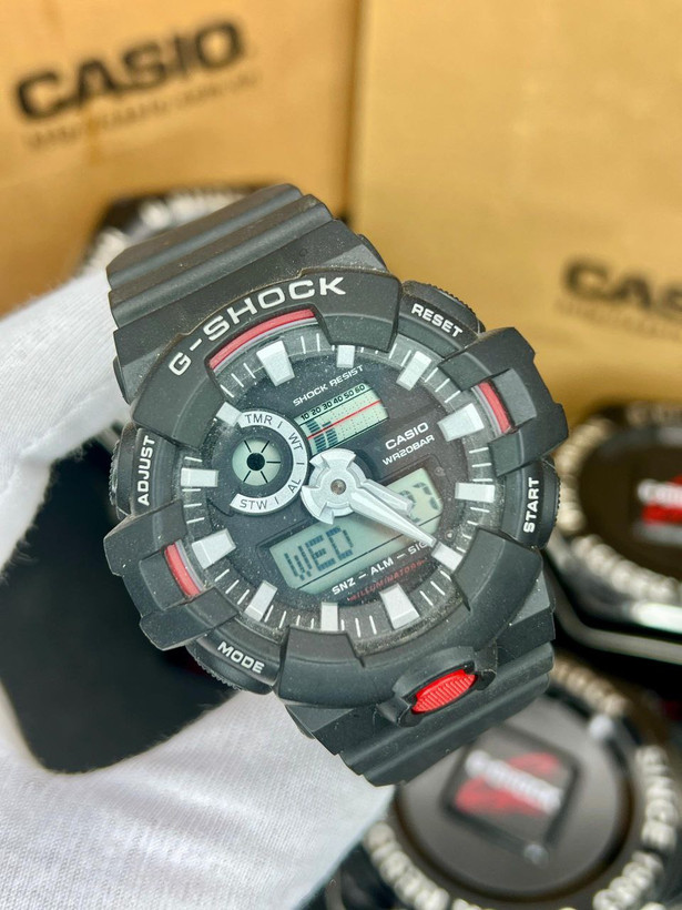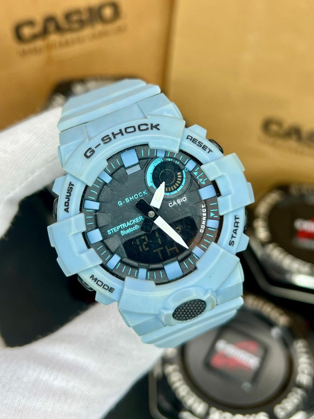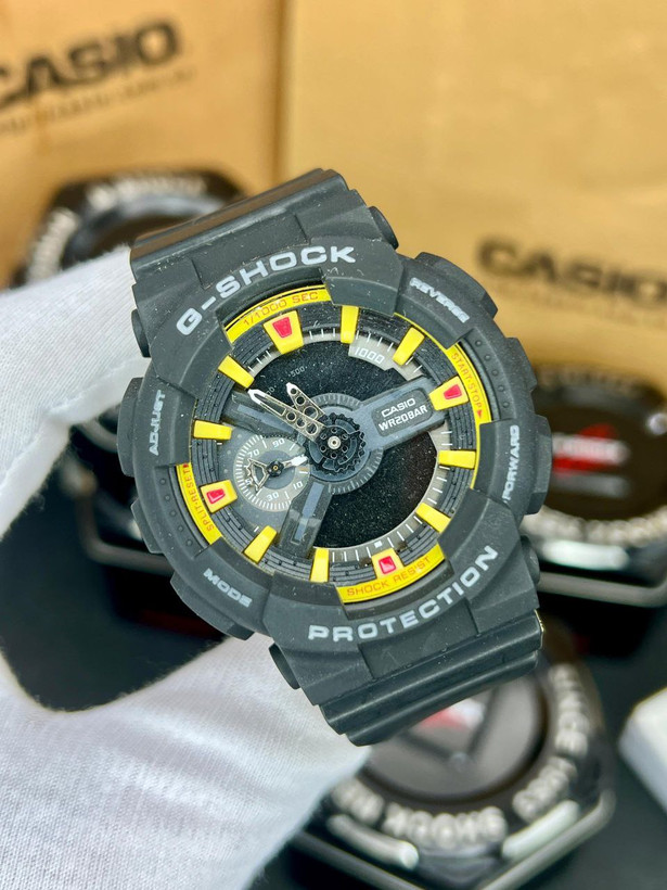 جی شاک ، دوزمانه، مقاوم در برابر اب، زنگ ، چراغ ، کرنومتر، بند رابر ، 6 ماه گارانتی بابت موتور ، ضدابی