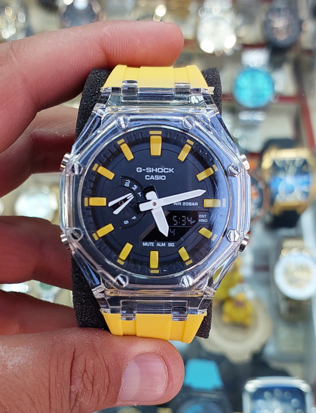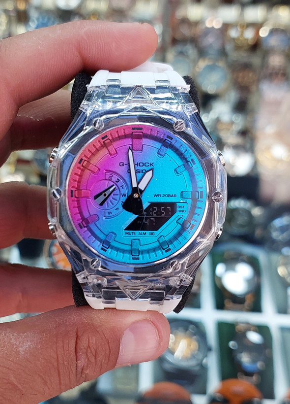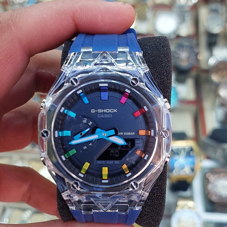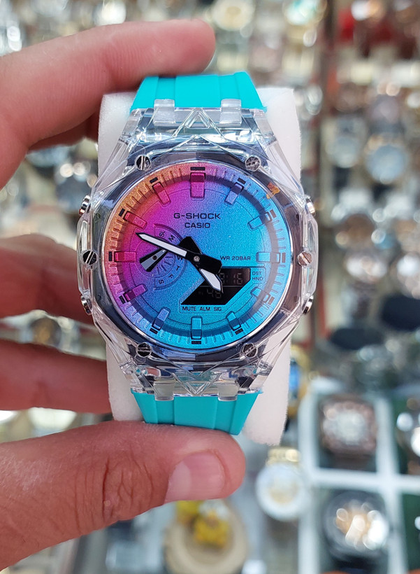 جی شاک، دوزمانه، در رنگهای مختلف، مقاوم در برابر آب، دارای آلارم، چراغ، کرنومتر