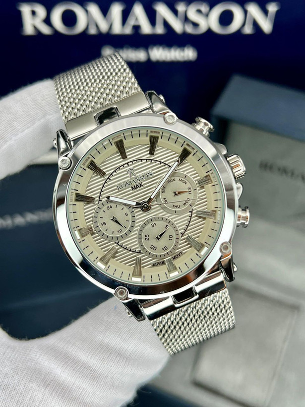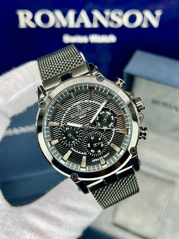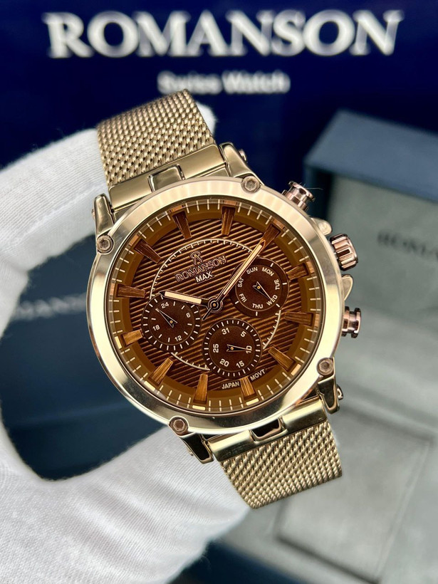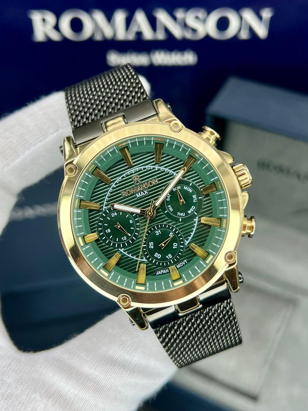 رومانسون ، بند حصیری، در طرح ورنگهای مختلف، یکسال گارانتی شرکتی، مقاوم در برابر آب، شیشه سافیر ضدخش، سه موتور فعال