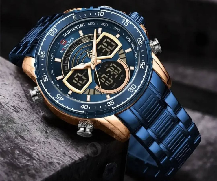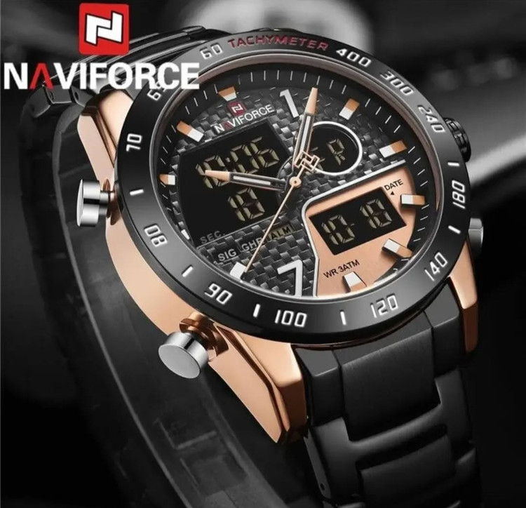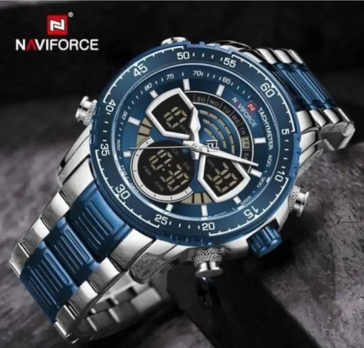 ناویفورس دوزمانه، ضداب ، در طرح ورنگهای مختلف، یکسال گارانتی شرکتی، شیشه سافیر ضدخش، دارای الارم ، زنگ ، چراغ