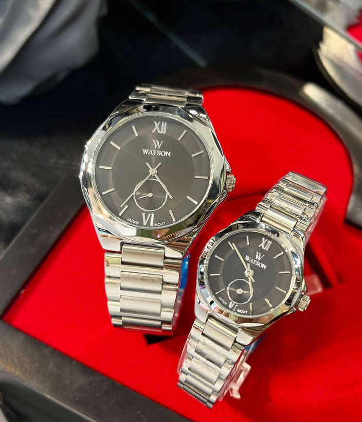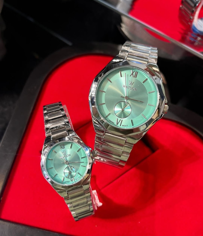 ست واتسون فلزی، موتور ژاپن، دوسال گارانتی شرکتی، در طرح ورنگهای مختلف، شیشه سافیر ضدخش، مقاوم در برابر آب، جعبه وپاکت اورجینال، دونه ای۶۸۰۰