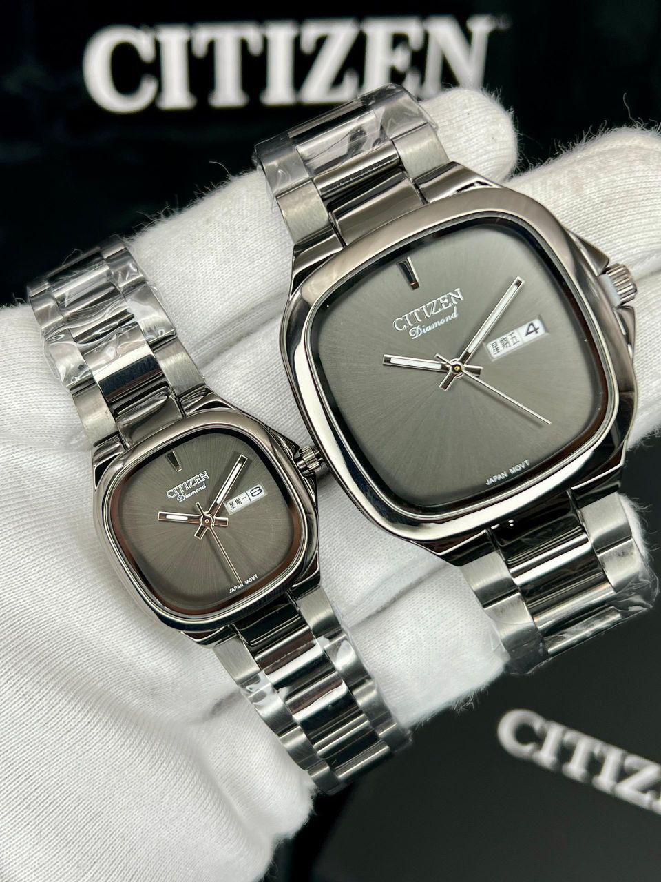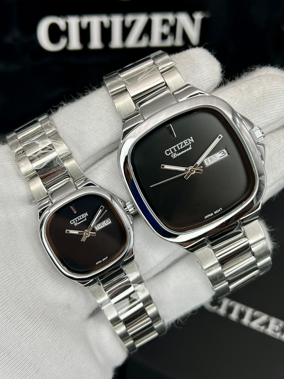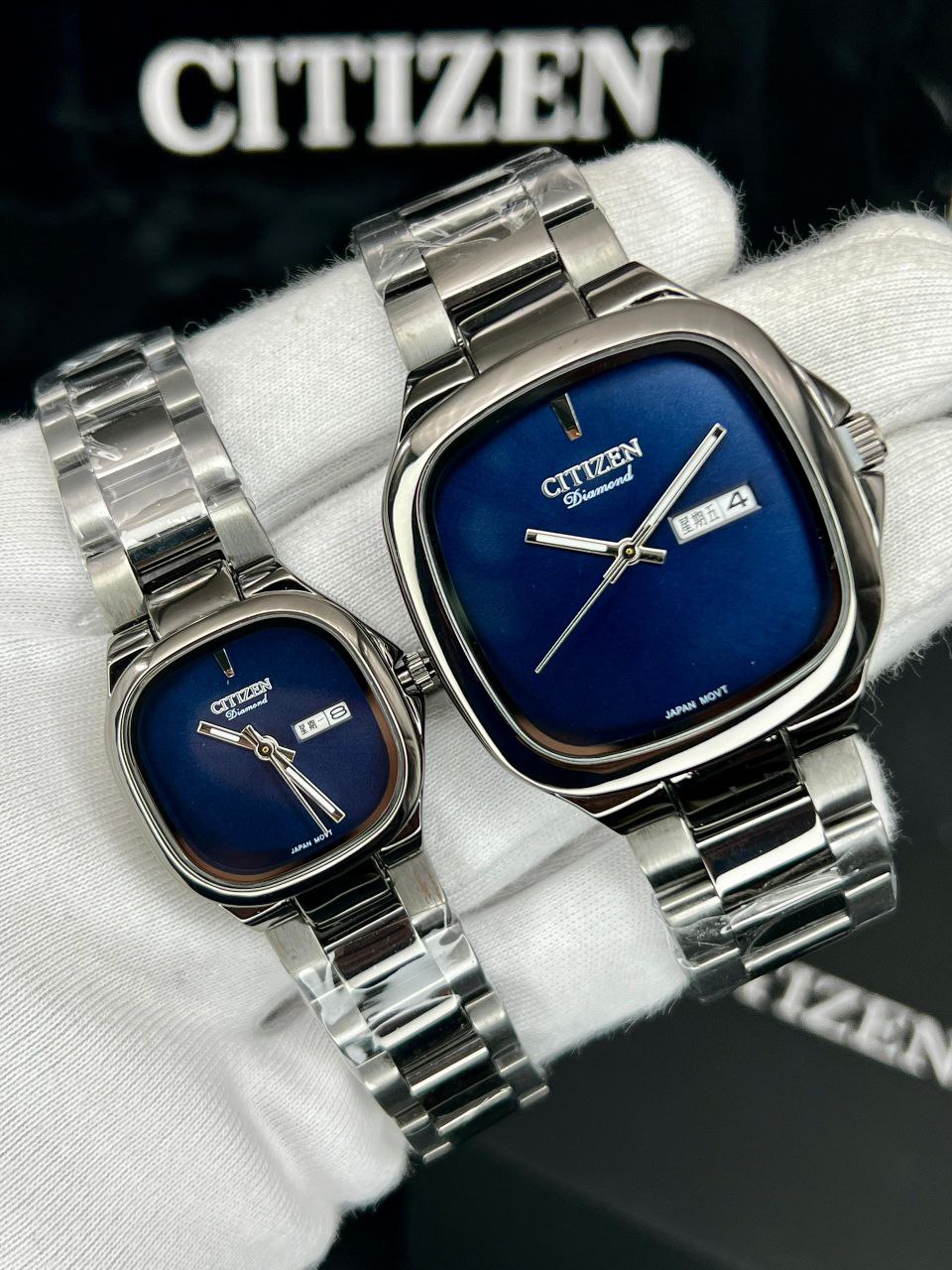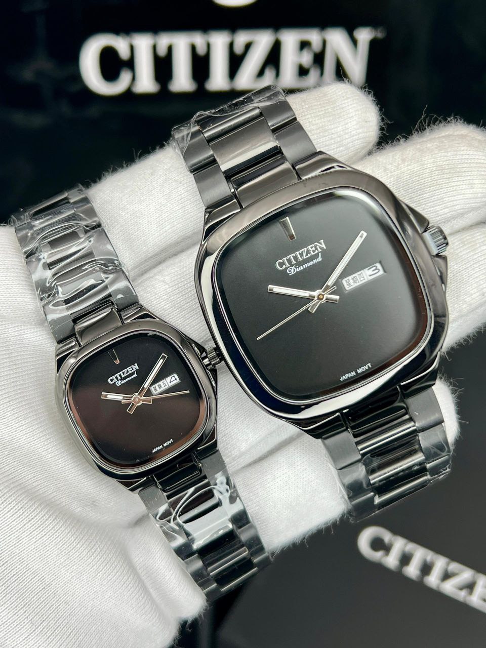 ست سیتیزن چهارگوش، موتور ژاپن، یکسال گارانتی شرکتی، در طرح ورنگهای مختلف، شیشه سافیر ضدخش، مقاوم در برابر آب