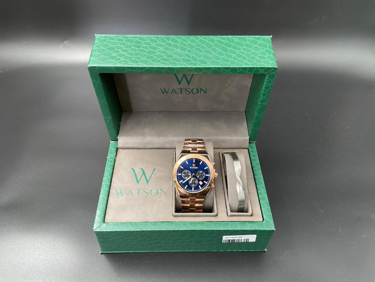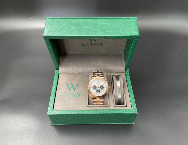 واتسون اورجینال، دوسال گارانتی شرکتی، سه موتور کرنو گراف. شیشه سافیر ضدخش، در طرح ورنگهای مختلف، مقاوم در برابر آب، جعبه وپاکت اورجینال