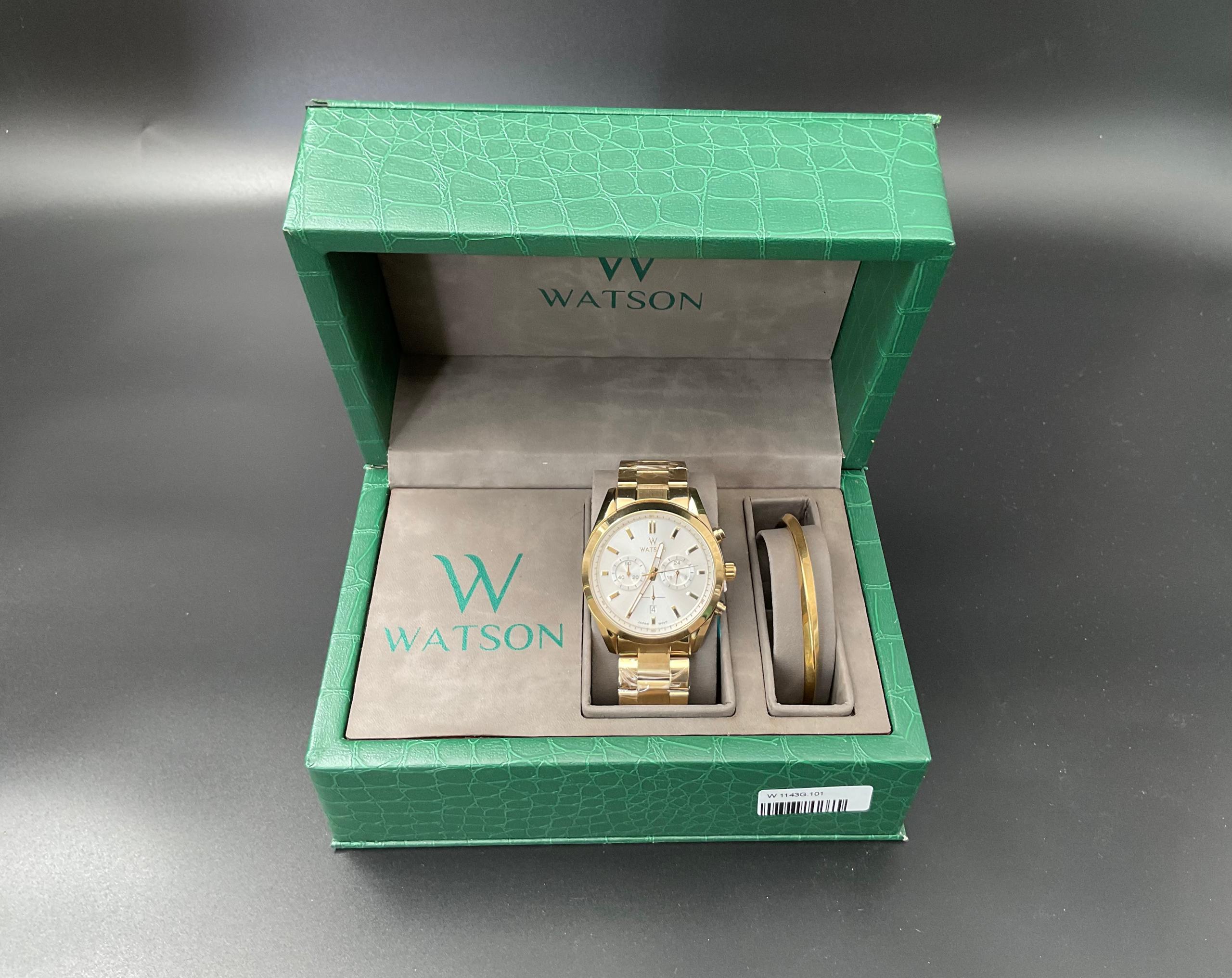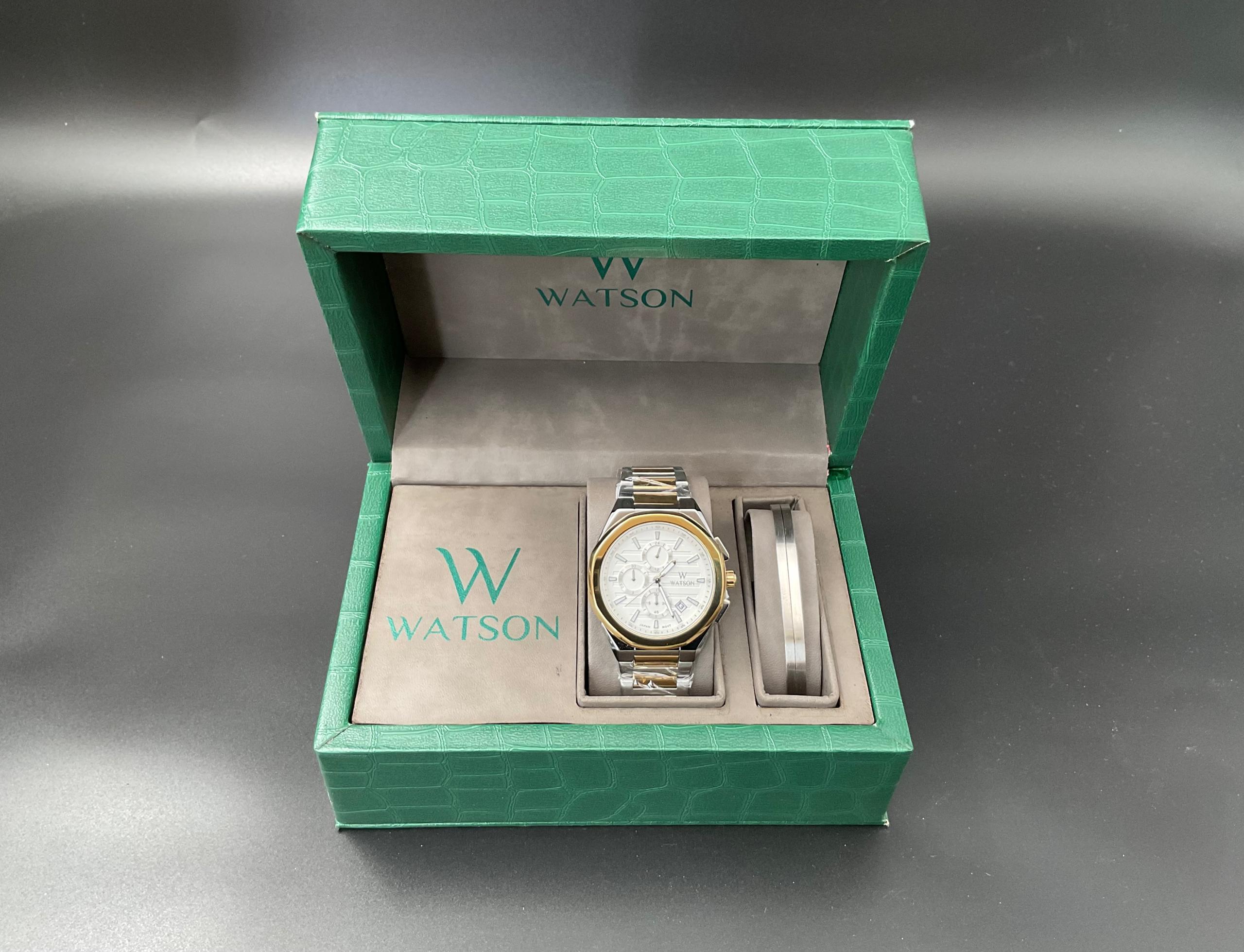 واتسون اورجینال، دوسال گارانتی شرکتی، سه موتور کرنو گراف. شیشه سافیر ضدخش، در طرح ورنگهای مختلف، مقاوم در برابر آب، جعبه وپاکت اورجینال