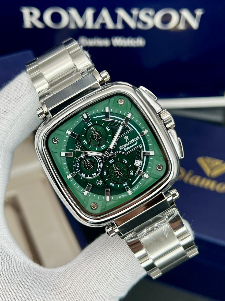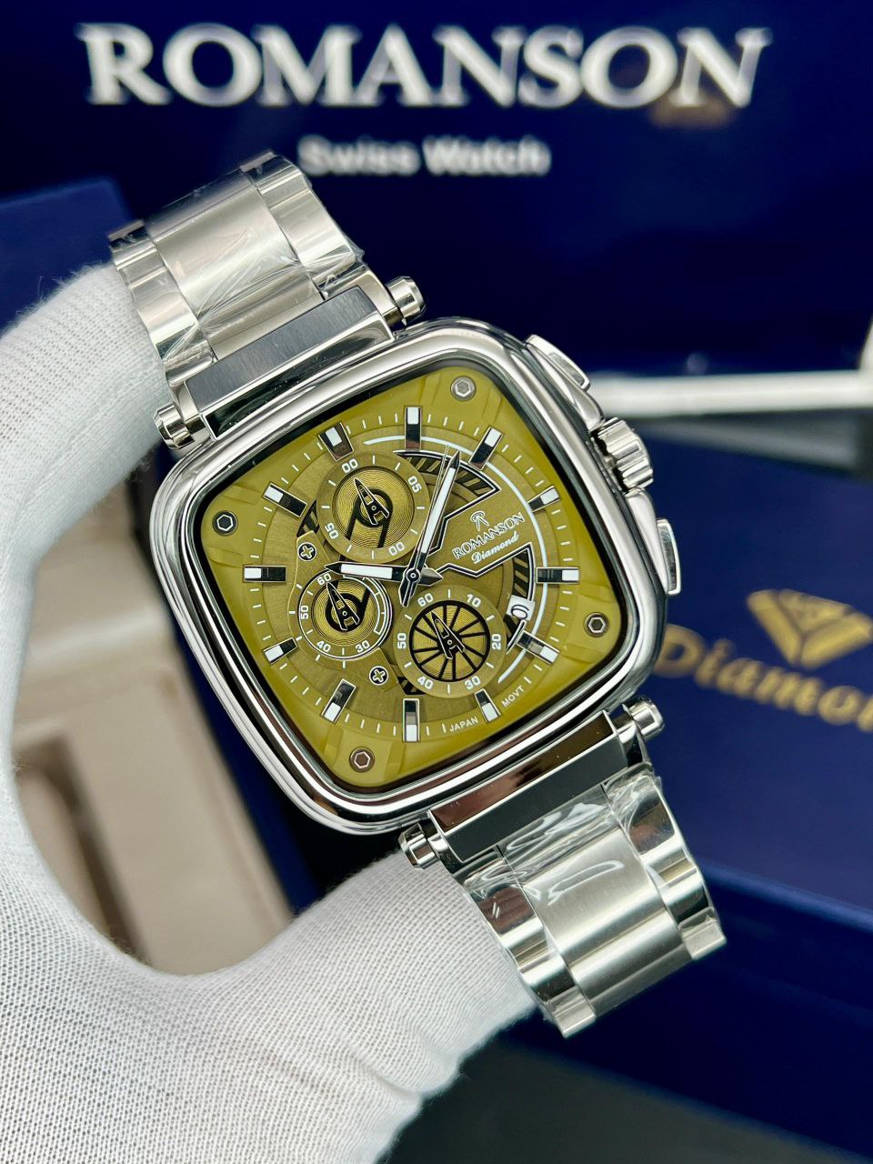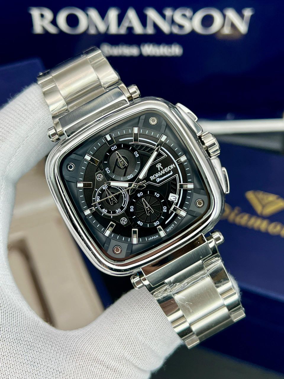 رومانسون چهارگوش، موتور ژاپن، یکسال گارانتی شرکتی، مقاوم در برابر آب، شیشه سافیر ضدخش، سه موتور اصلی، ضد حساسیت