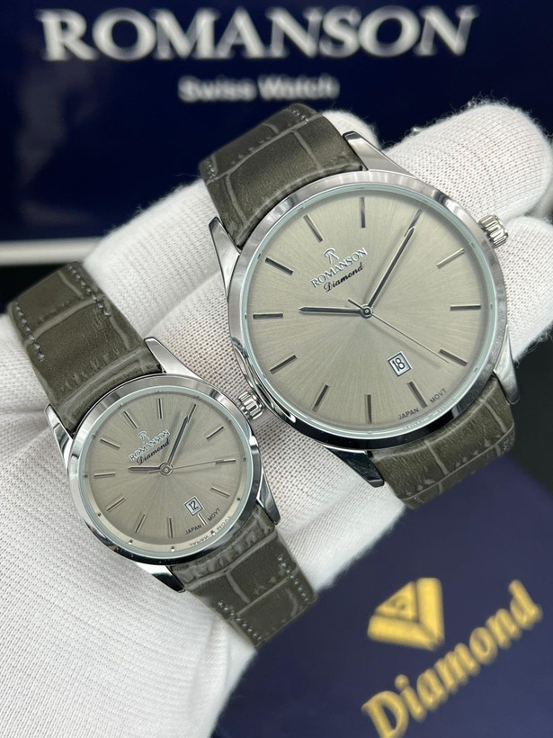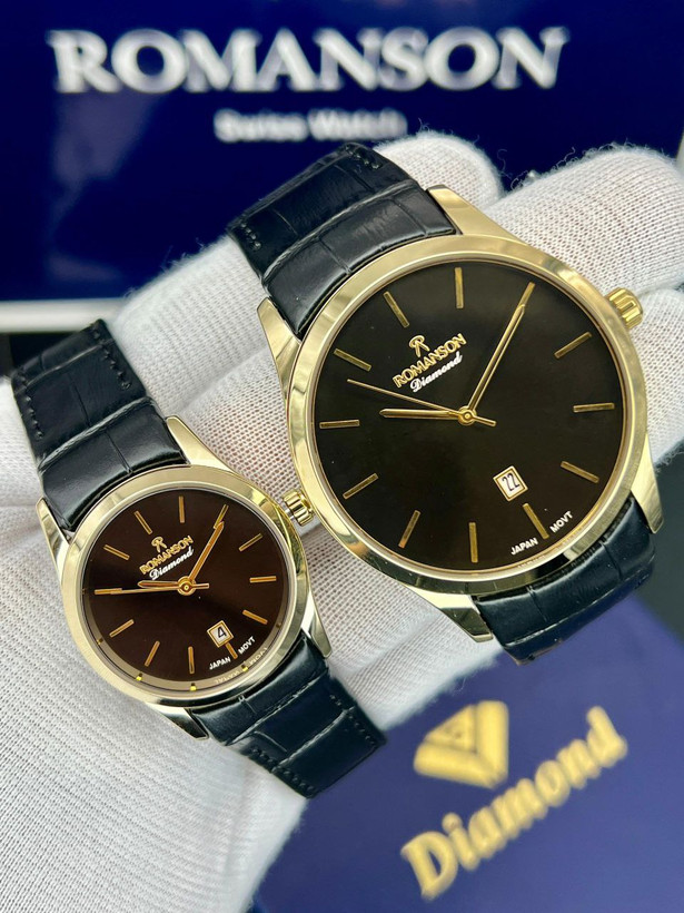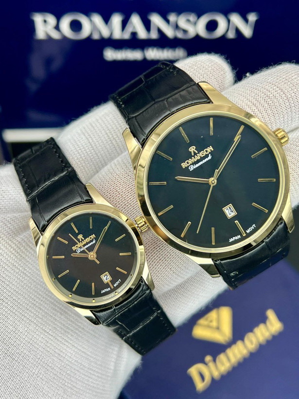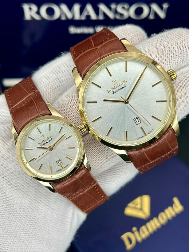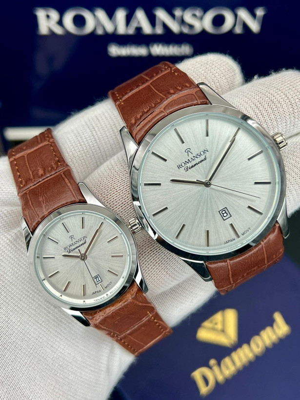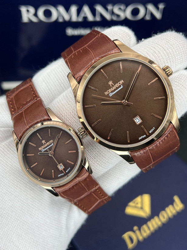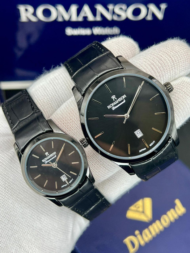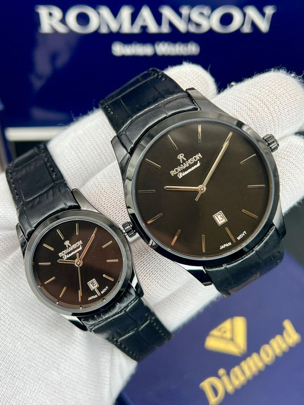 ست رومانسون، بند چرمی، موتور ژاپن، یکسال گارانتی شرکتی، مقاوم در برابر آب، شیشه سافیر ضدخش، در طرح ورنگهای مختلف، دونه ای ۴۵۰۰