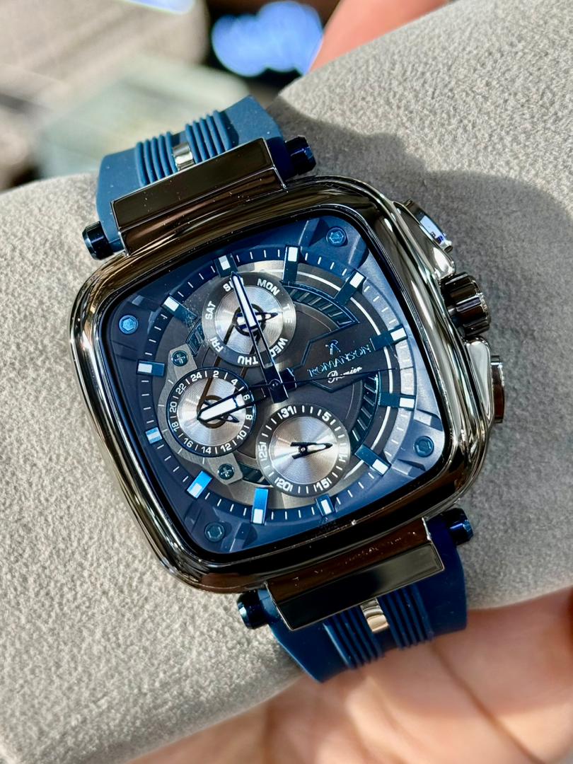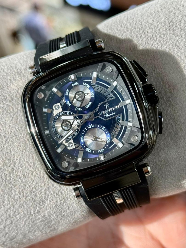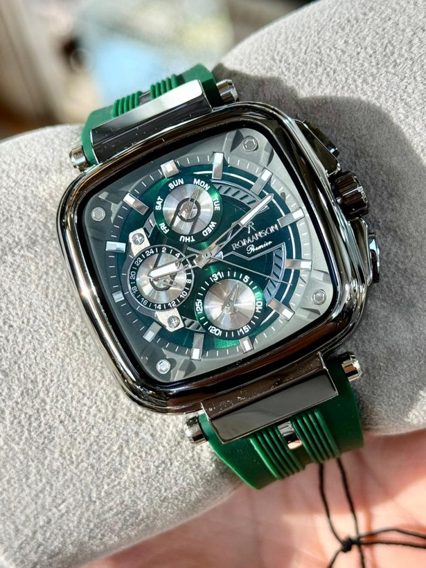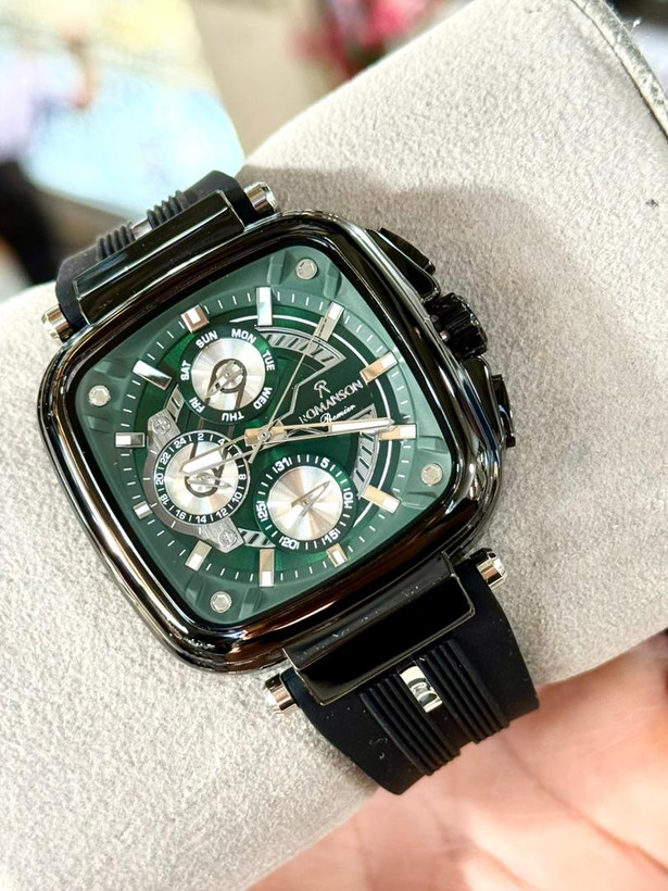 رومانسون سه موتور کرنو گراف، موتور ژاپن، یکسال گارانتی شرکتی، مقاوم در برابر آب، شیشه سافیر ضدخش، در طرح ورنگهای مختلف، بند رابر،