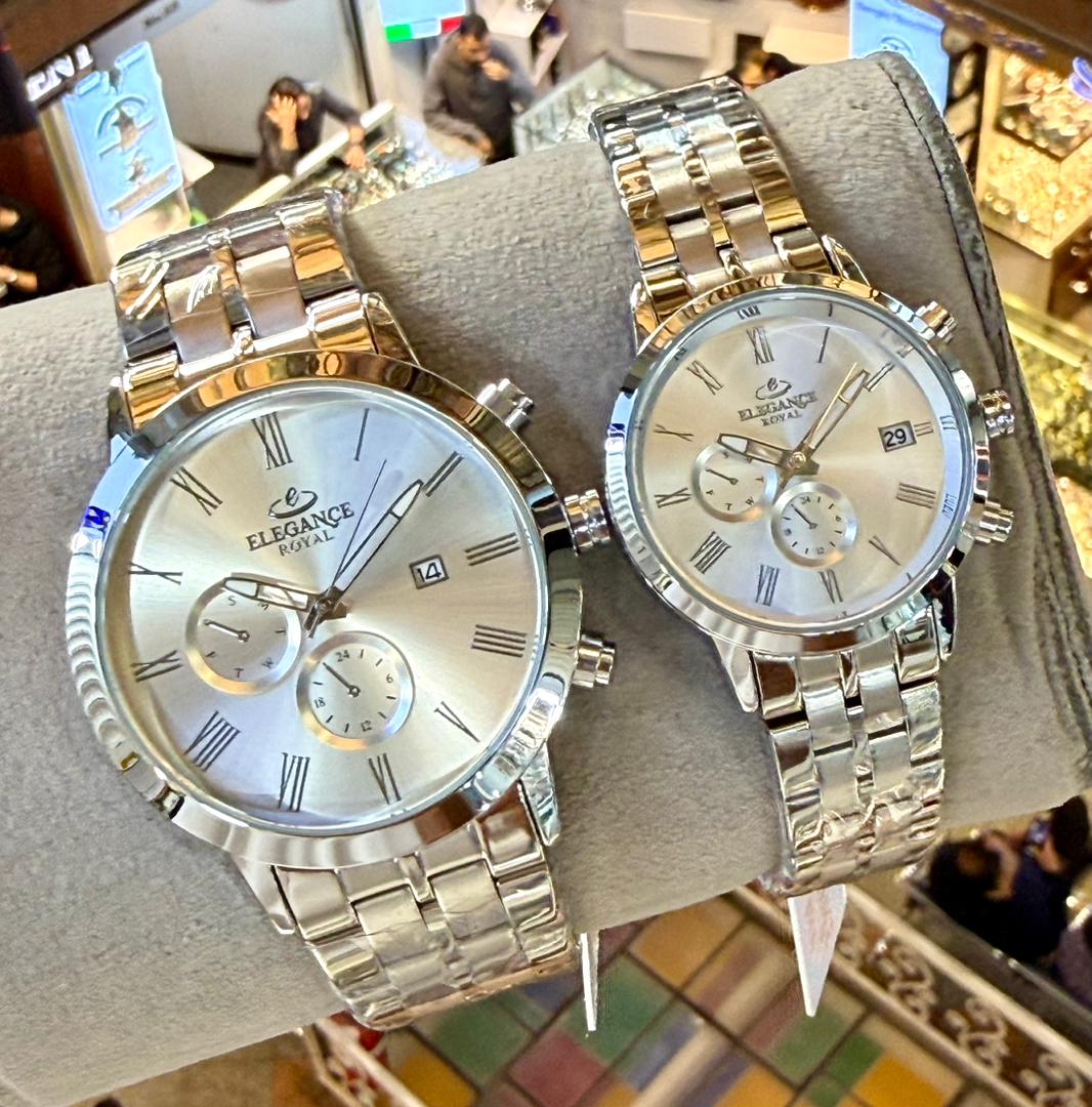 ست الگانس فلزی، موتور ژاپن، یکسال گارانتی شرکتی، در طرح ورنگهای مختلف، شیشه سافیر ضدخش، مقاوم در برابر آب، دونه ای ۲۵۰۰