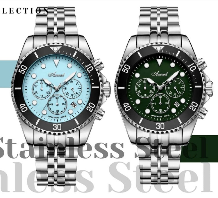 اکسنت اورجینال، دوسال گارانتی شرکتی، ضداب صدرصد، موتور ژاپن، سه موتور کرنو گراف، در طرح ورنگهای مختلف، شیشه سافیر ضدخش، جعبه وپاکت اورجینال