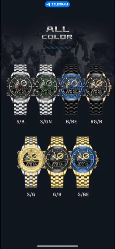 ناویفورس دوزمانه، موتور ژاپن، یکسال گارانتی شرکتی، مقاوم در برابر آب، شیشه سافیر ضدخش، در طرح ورنگهای مختلف