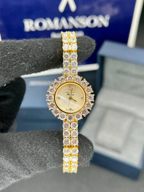 رومانسون زنانه، نگین دار ، نگین سوارسکی، موتور ژاپن ، یکسال گارانتی شرکتی ، مقاوم در برابر اب ، ضد حساسیت