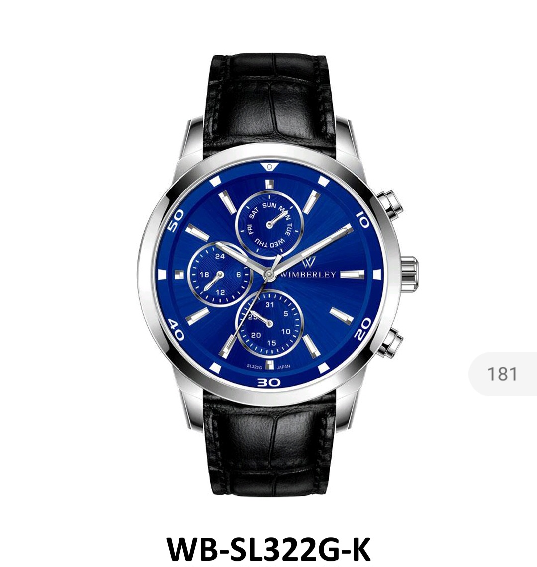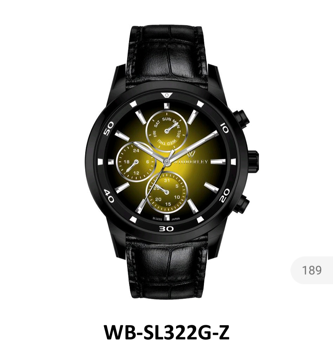ویمبرلی بند چرمی، موتور ژاپن، دوسال گارانتی شرکتی، مقاوم در برابر آب، شیشه سافیر ضدخش، در طرح ورنگهای مختلف، سه موتور فعال،
